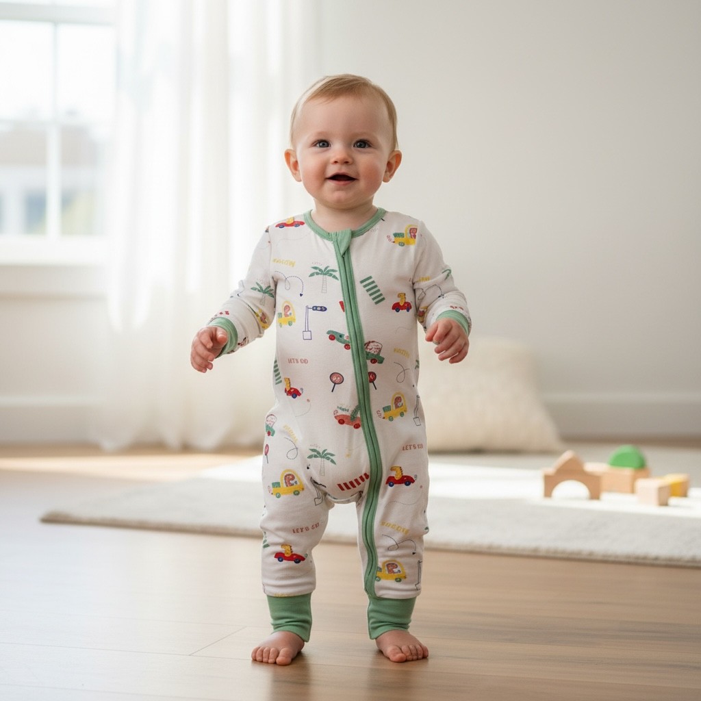 Bamboo BFF Hugz Two way opening Zipper Sleepsuit with foldable mittens & footies.