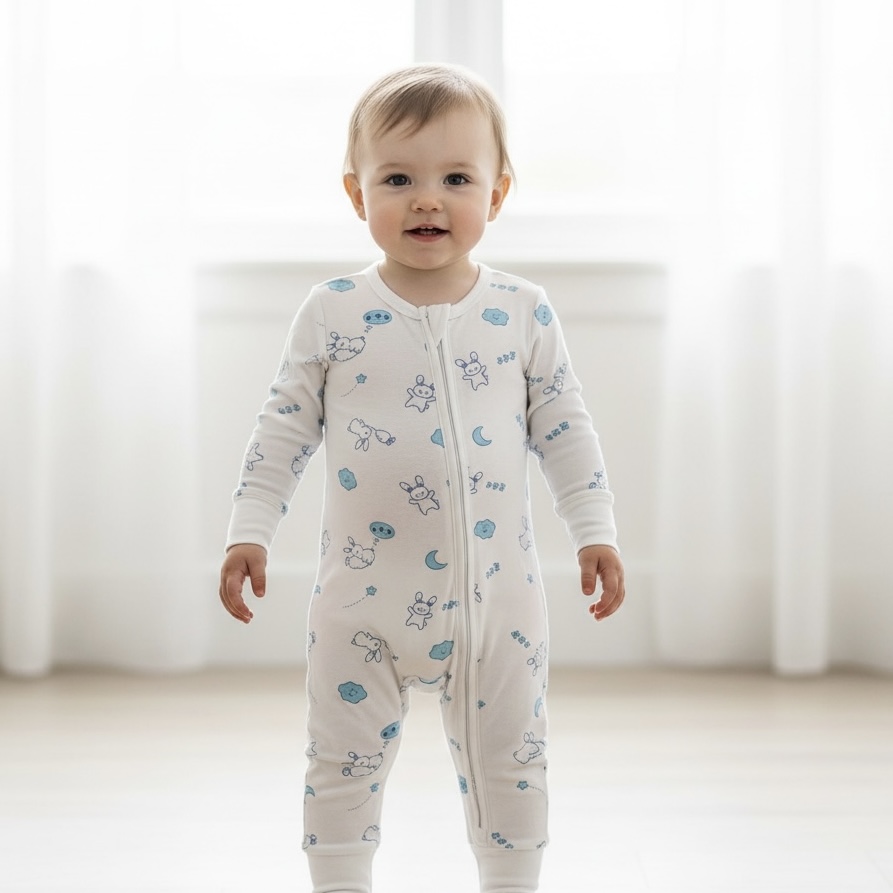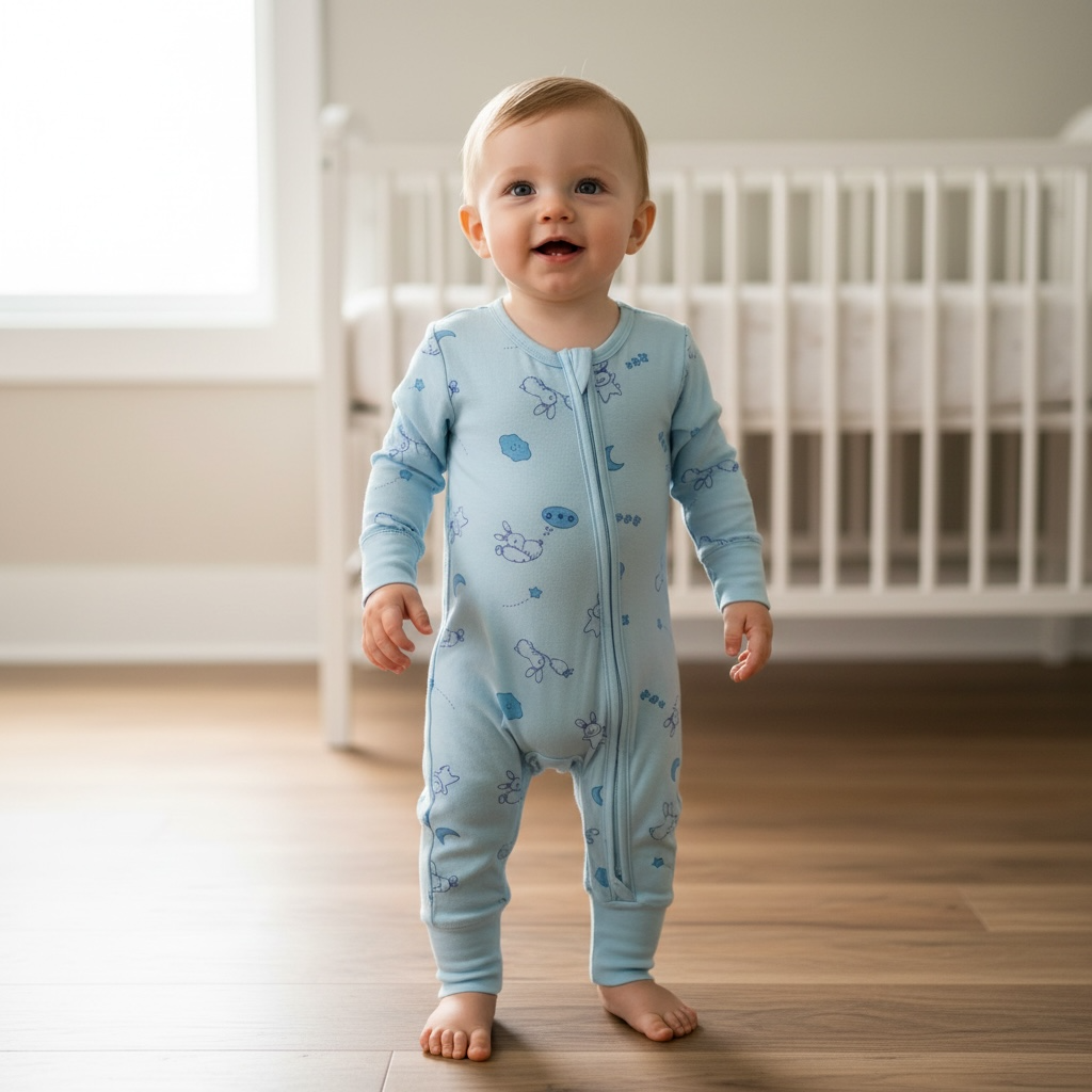 Bamboo BFF Hugz Zipper Sleepsuit with foldable mittens & footies.
