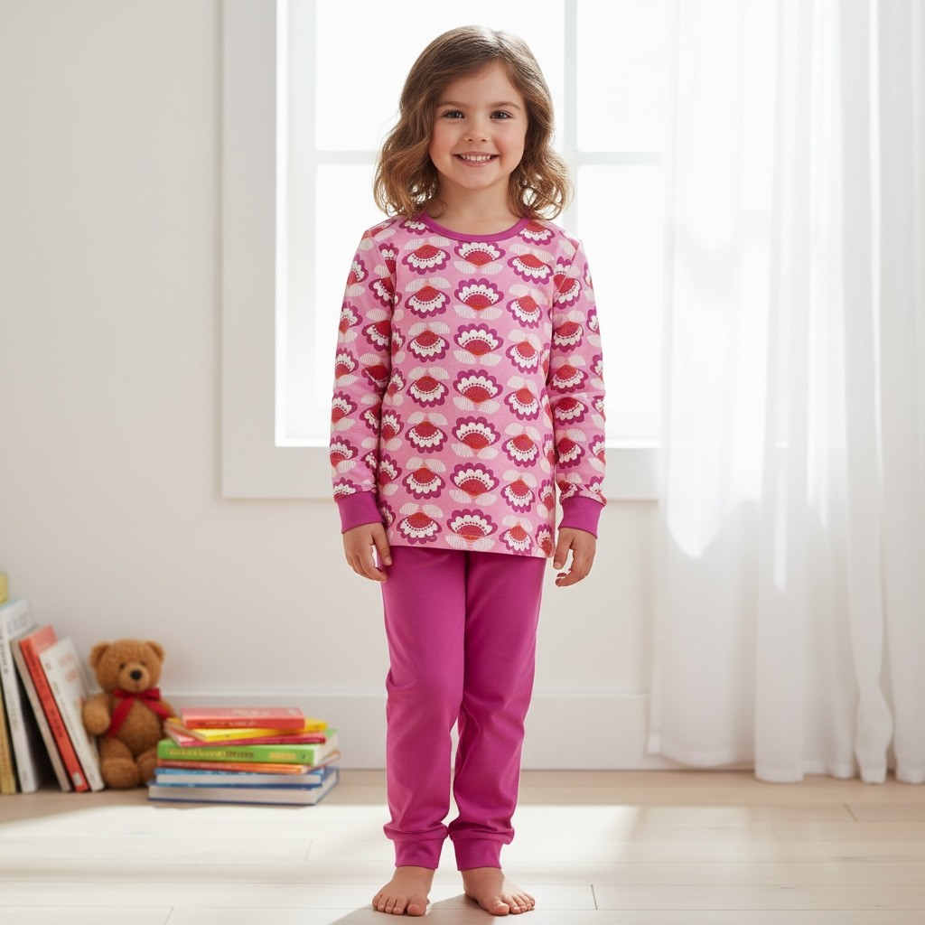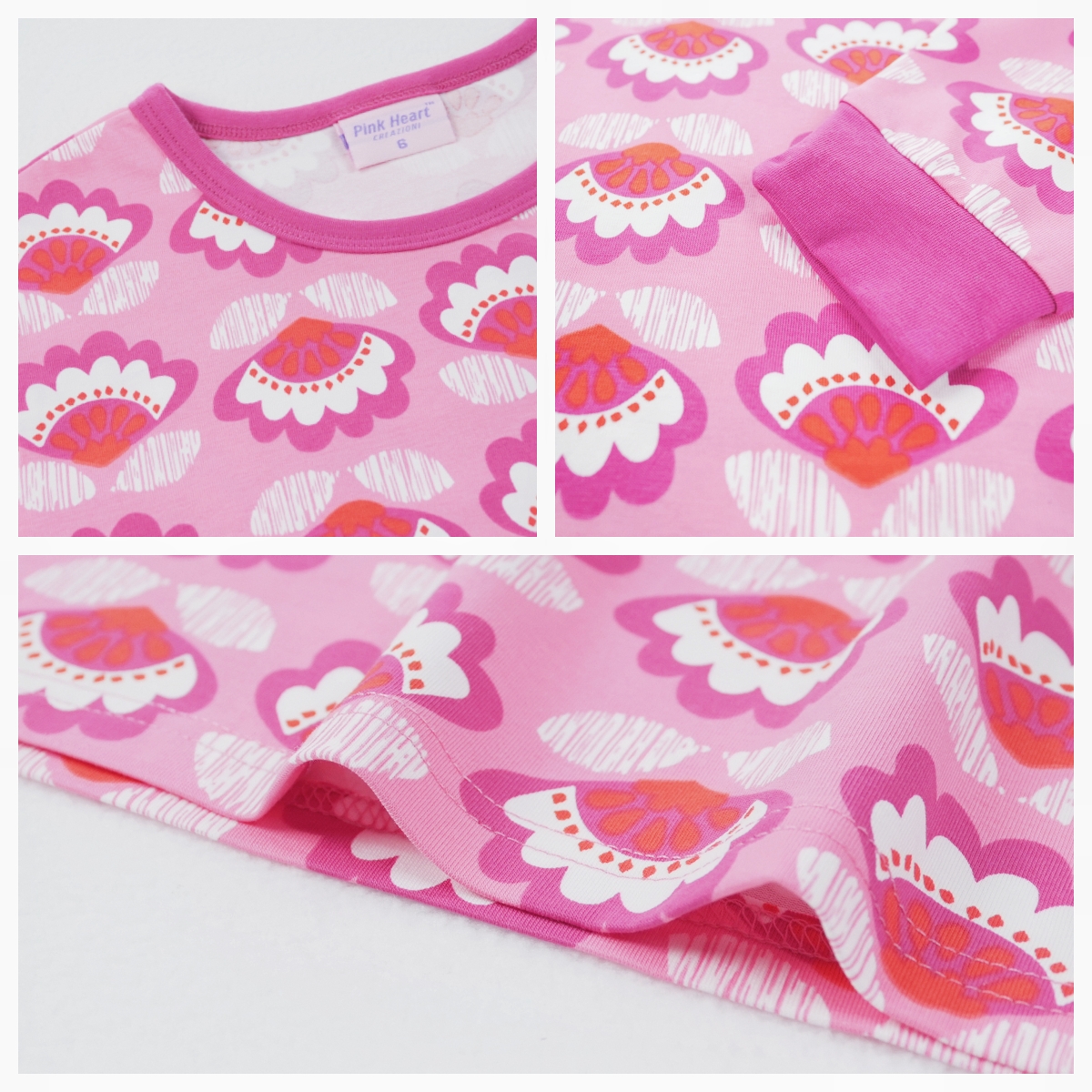 [Pink Heart] Kids/Pre-teens Girl Pyjamas Set – Flowers