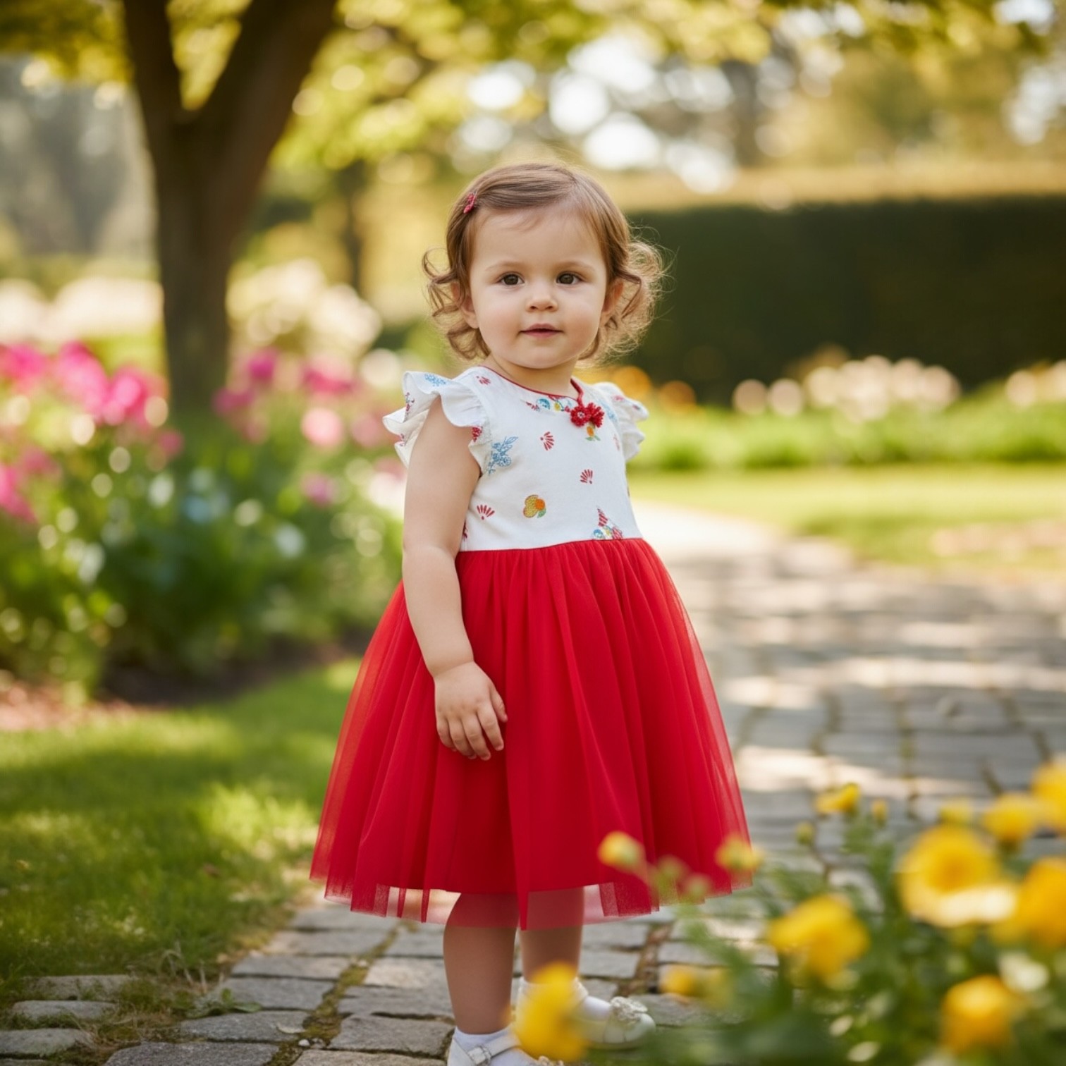 100% printed cotton with extra fine tulle net skirt.