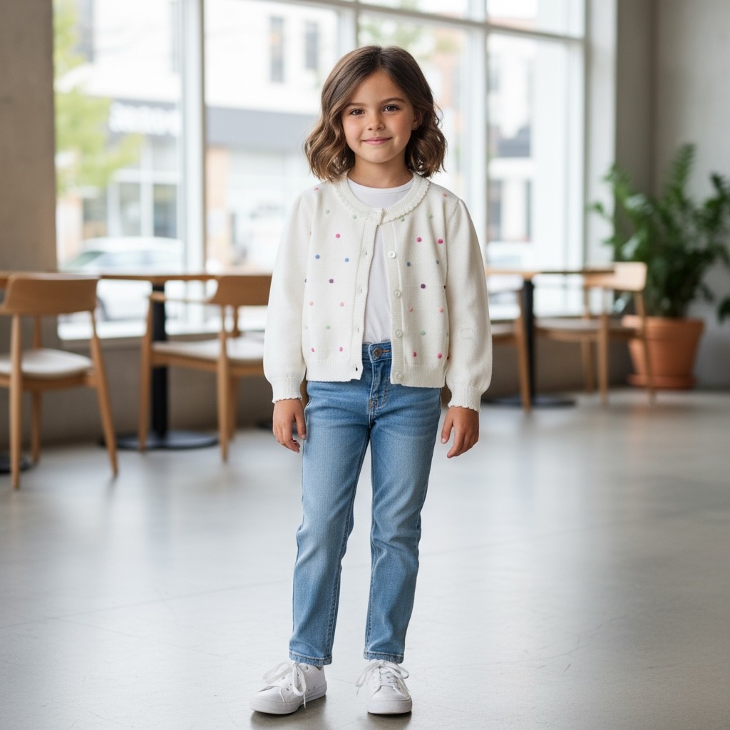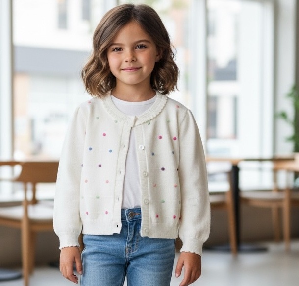 Toddler/Girl Knitted Embroidered Cardigan – Color Dot Design
