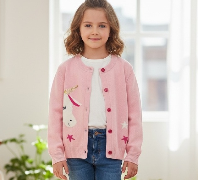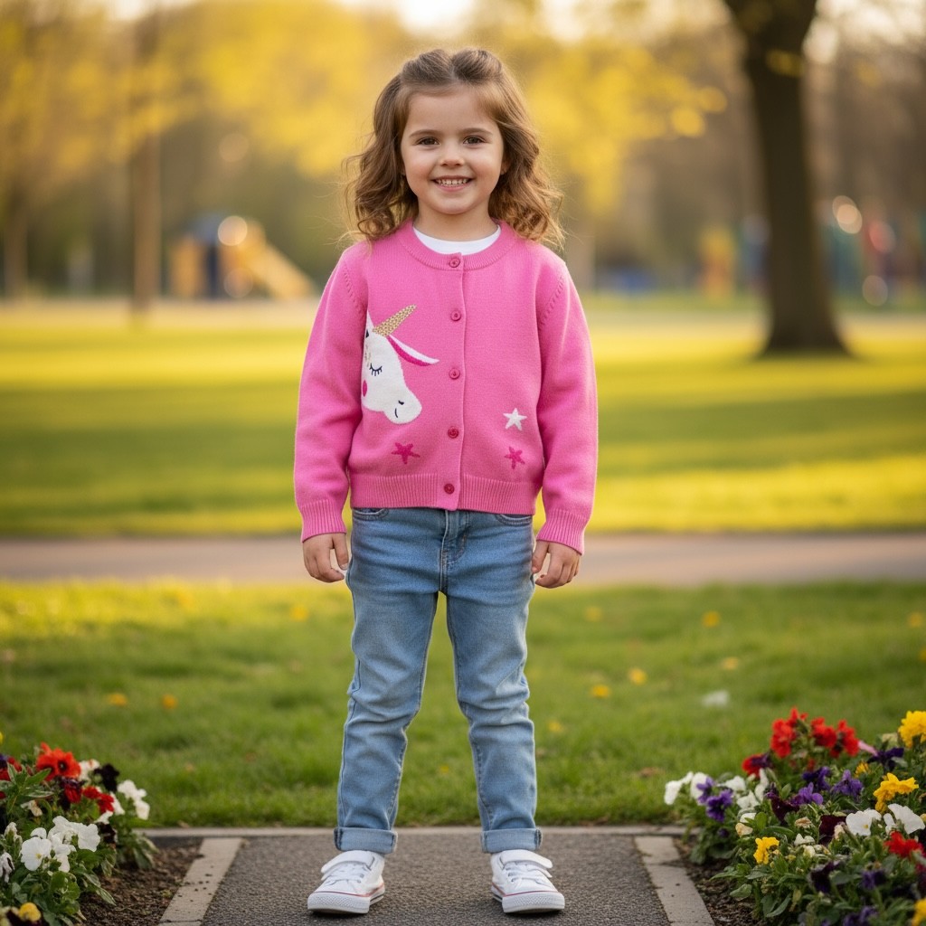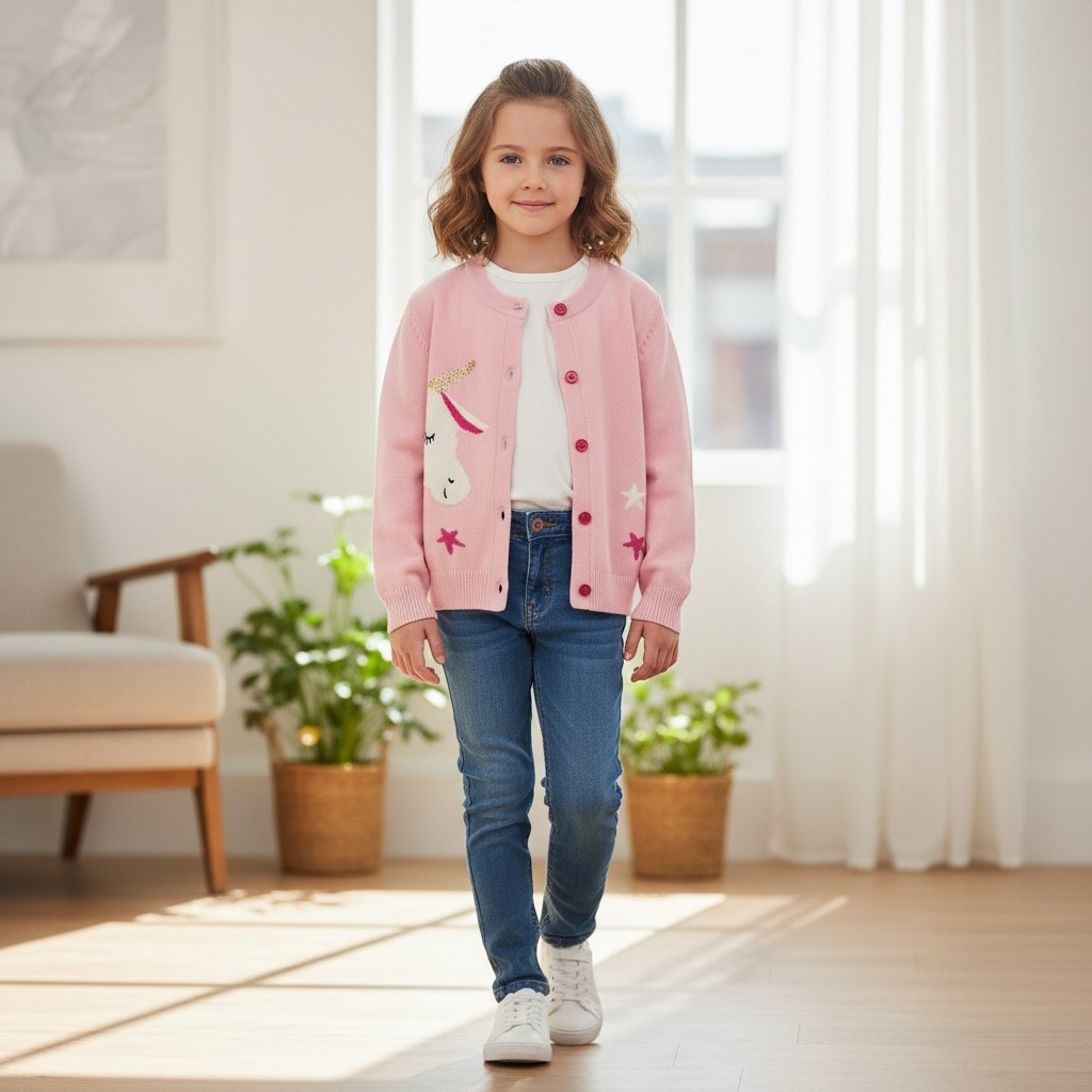 Toddler/Girl Knitted Embroidered Cardigan – Unicorn Design